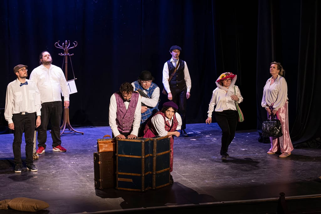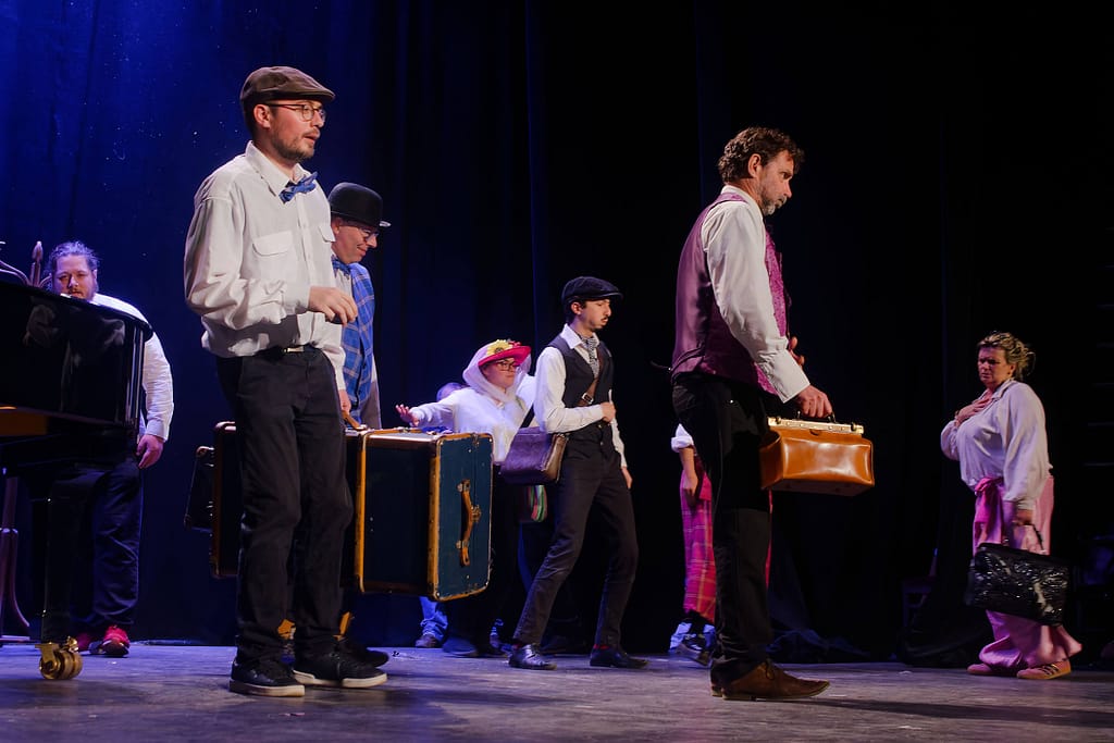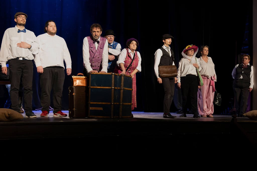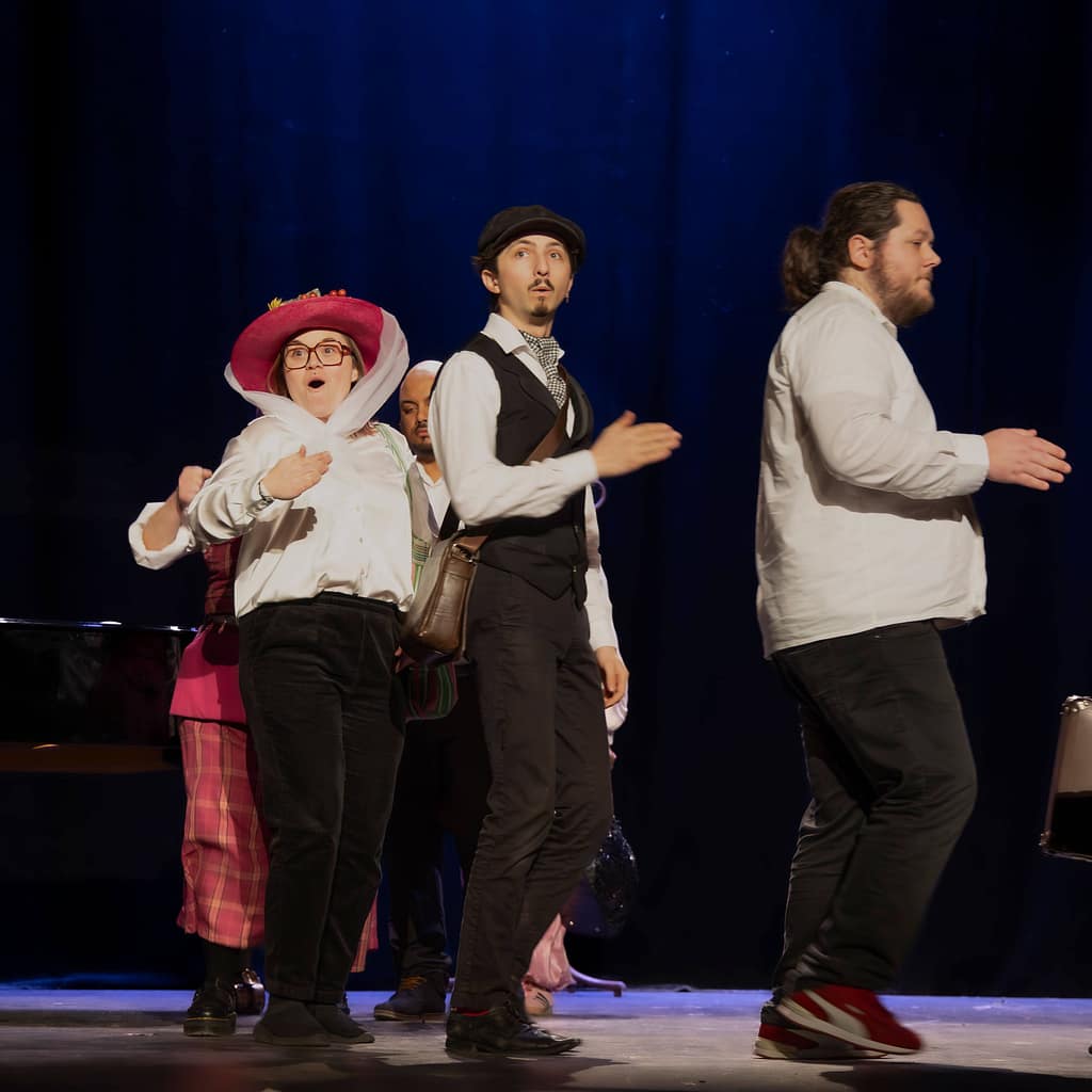 Distribution : Avec les patients et les infirmiers de l’Hôpital de Jour Érasme du GHEF Christophe, Henri, Thomas, Sarah, Daniel, Rayhan, Laure, Anthony, Catherine, Céline Comédien Léo Bauchet Pianiste Frédéric Couraillon Mise en scène et adaptation Amélie Blottiere Costumes Anne Chambault Conseillère Chorégraphique Stéfany Ganachaud Création Lumière Lionel Doucet.