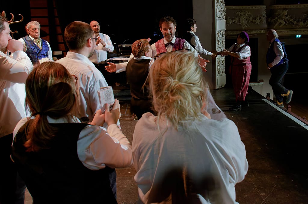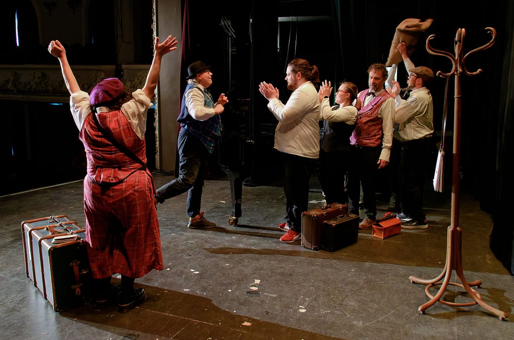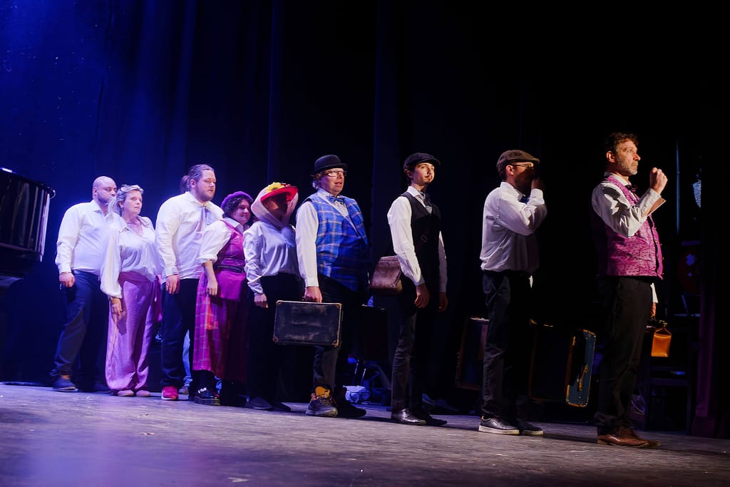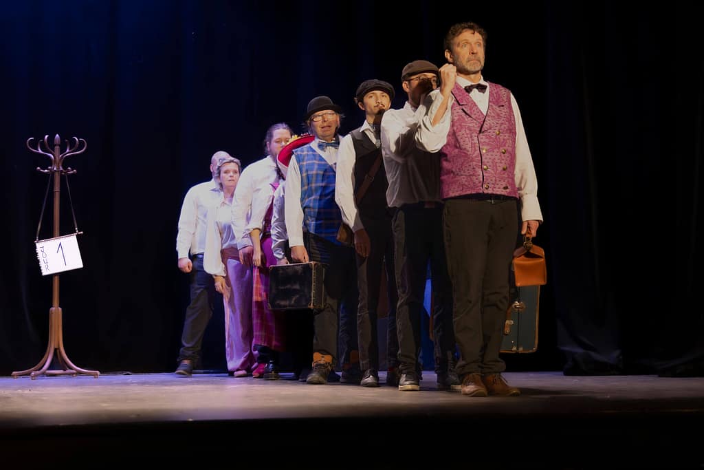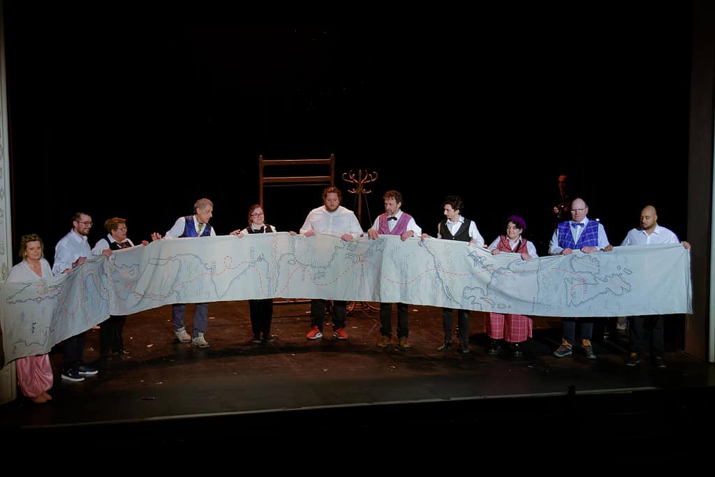 Distribution : Avec les patients et les infirmiers de l’Hôpital de Jour Érasme du GHEF Christophe, Henri, Thomas, Sarah, Daniel, Rayhan, Laure, Anthony, Catherine, Céline Comédien Léo Bauchet Pianiste Frédéric Couraillon Mise en scène et adaptation Amélie Blottiere Costumes Anne Chambault Conseillère Chorégraphique Stéfany Ganachaud Création Lumière Lionel Doucet.